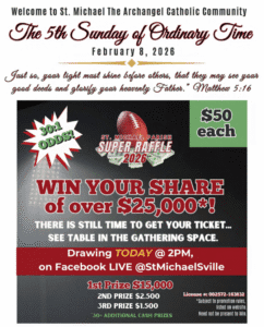 Our office hours are Monday – Friday: 9:00am to 4:00pm. The parish office is the white two story building across from the cemetery!